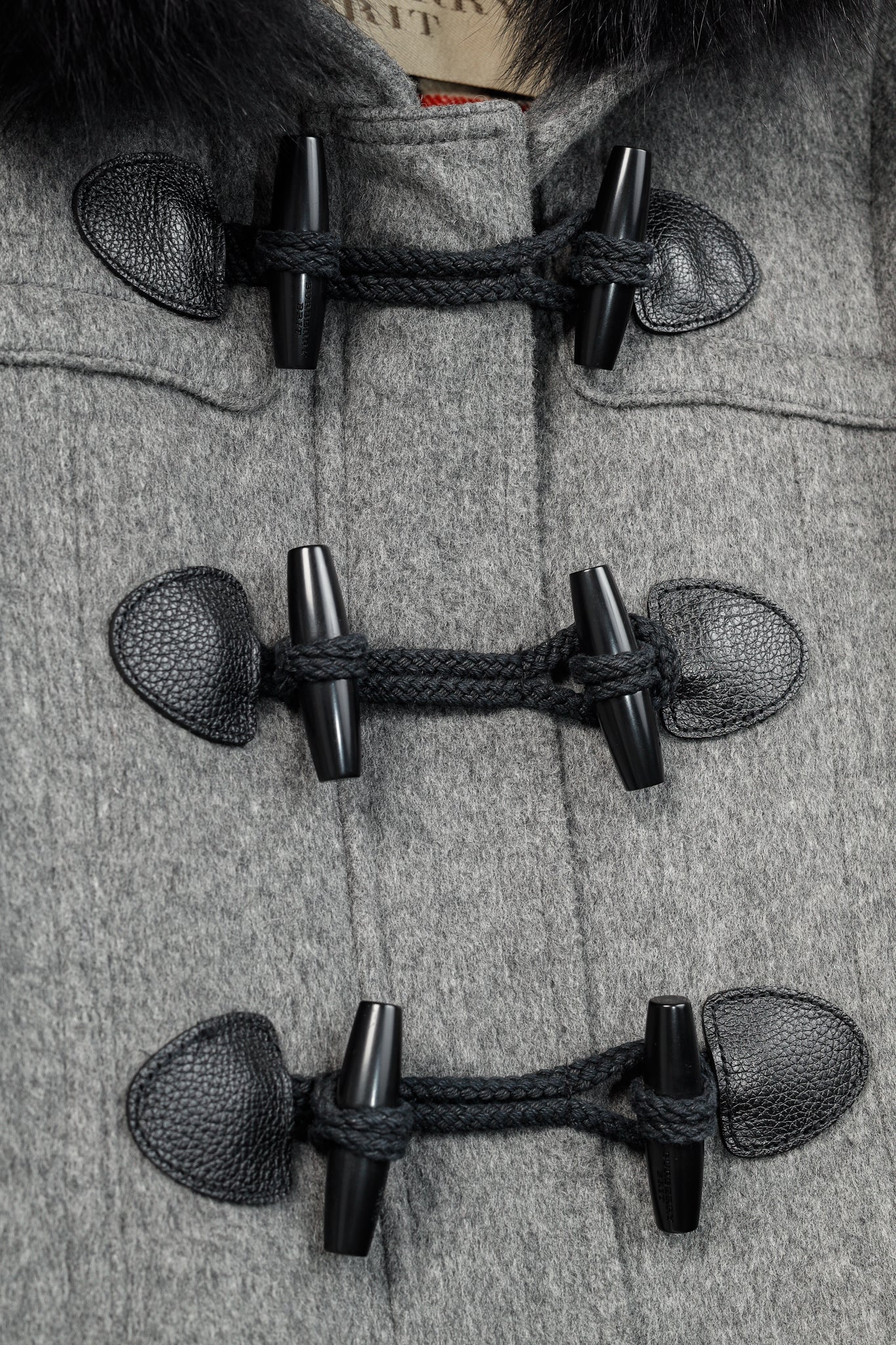 Burberry Brit Blackwell Grey Wool Fur-Trim Duffle Coat
