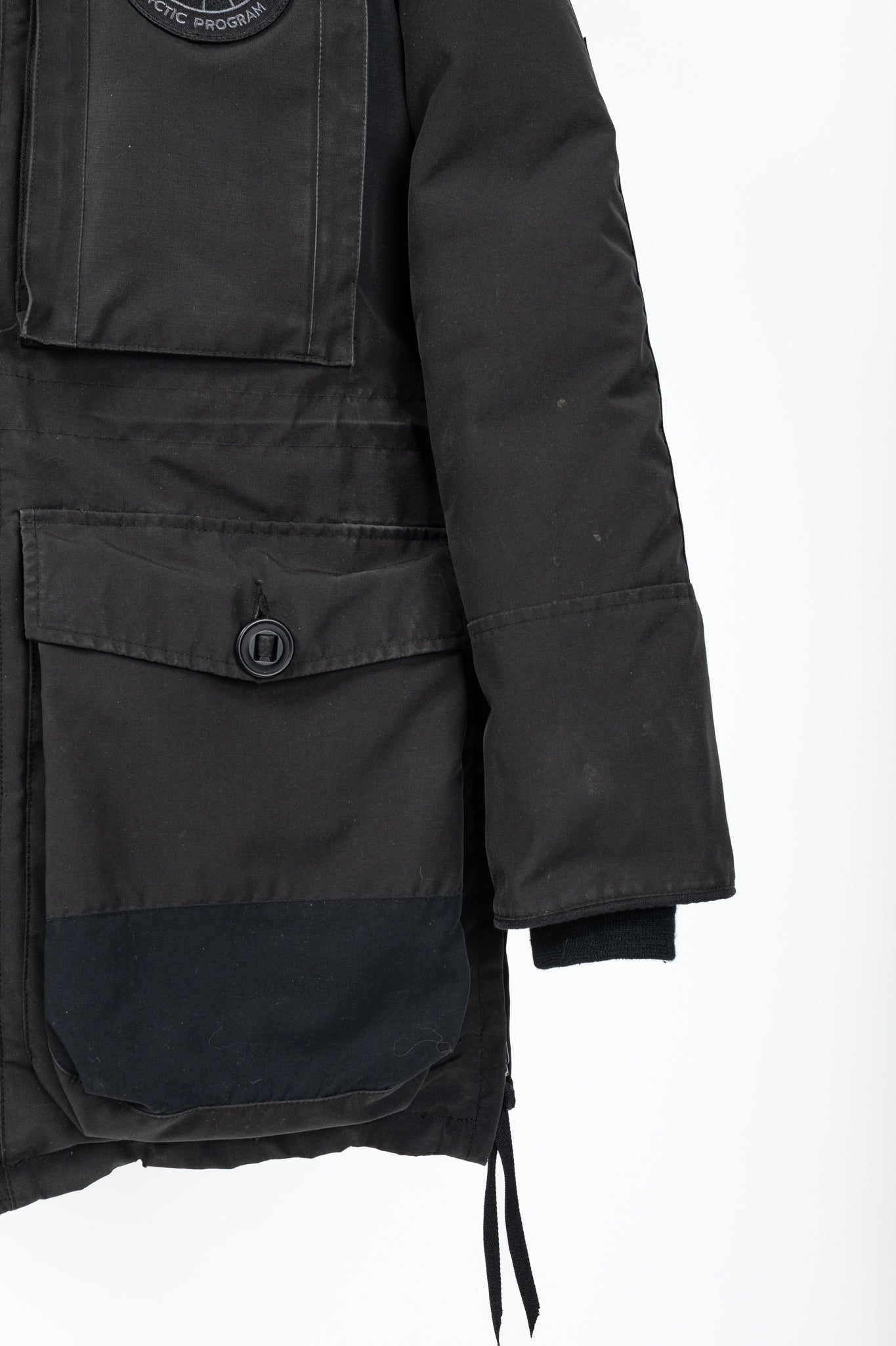 Condition: Excellent; light marking throughout shell and on inner neck, light pilling on cuffs. Missing coyote fur trim on hood. Comes with garment bag.