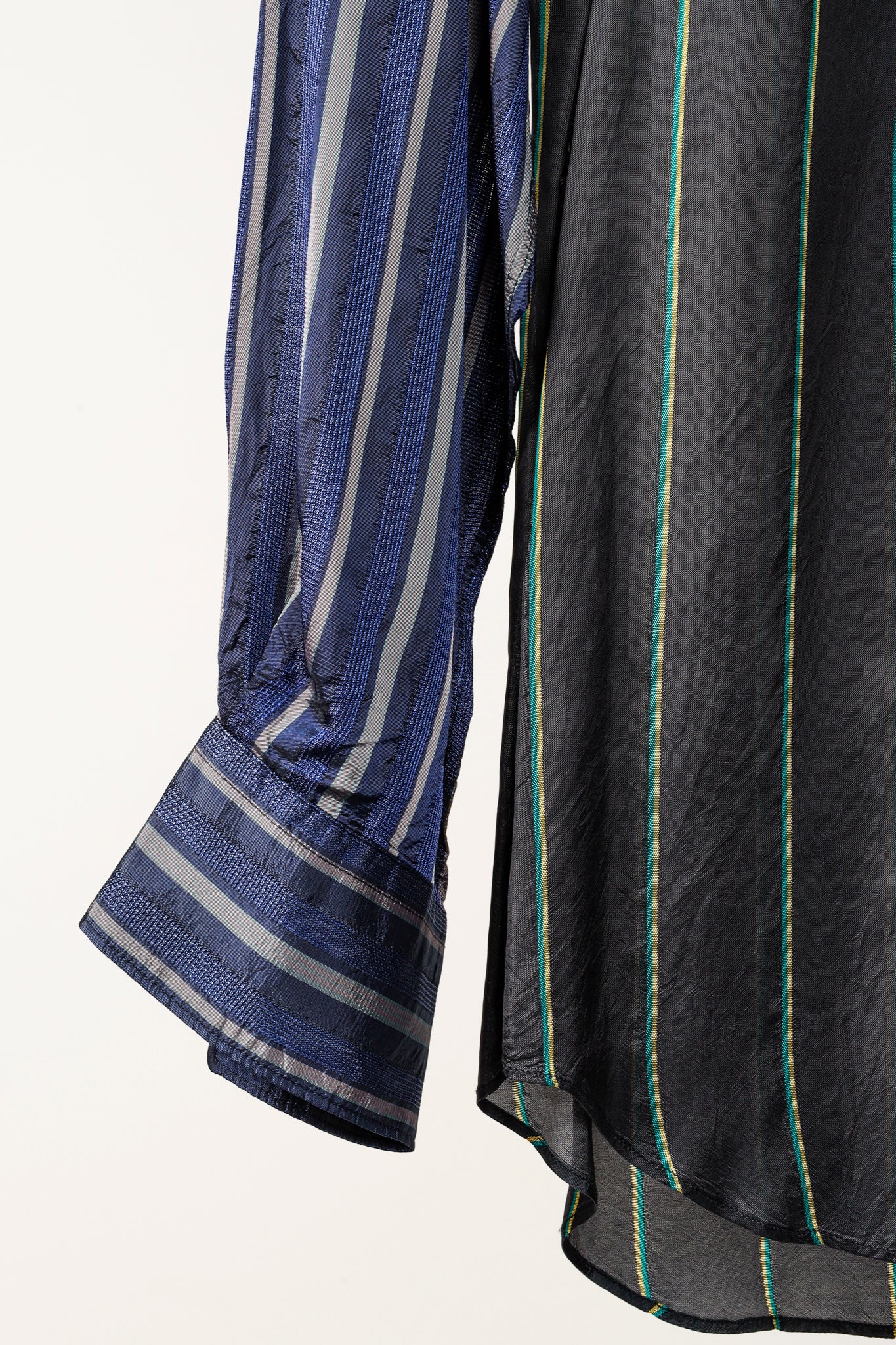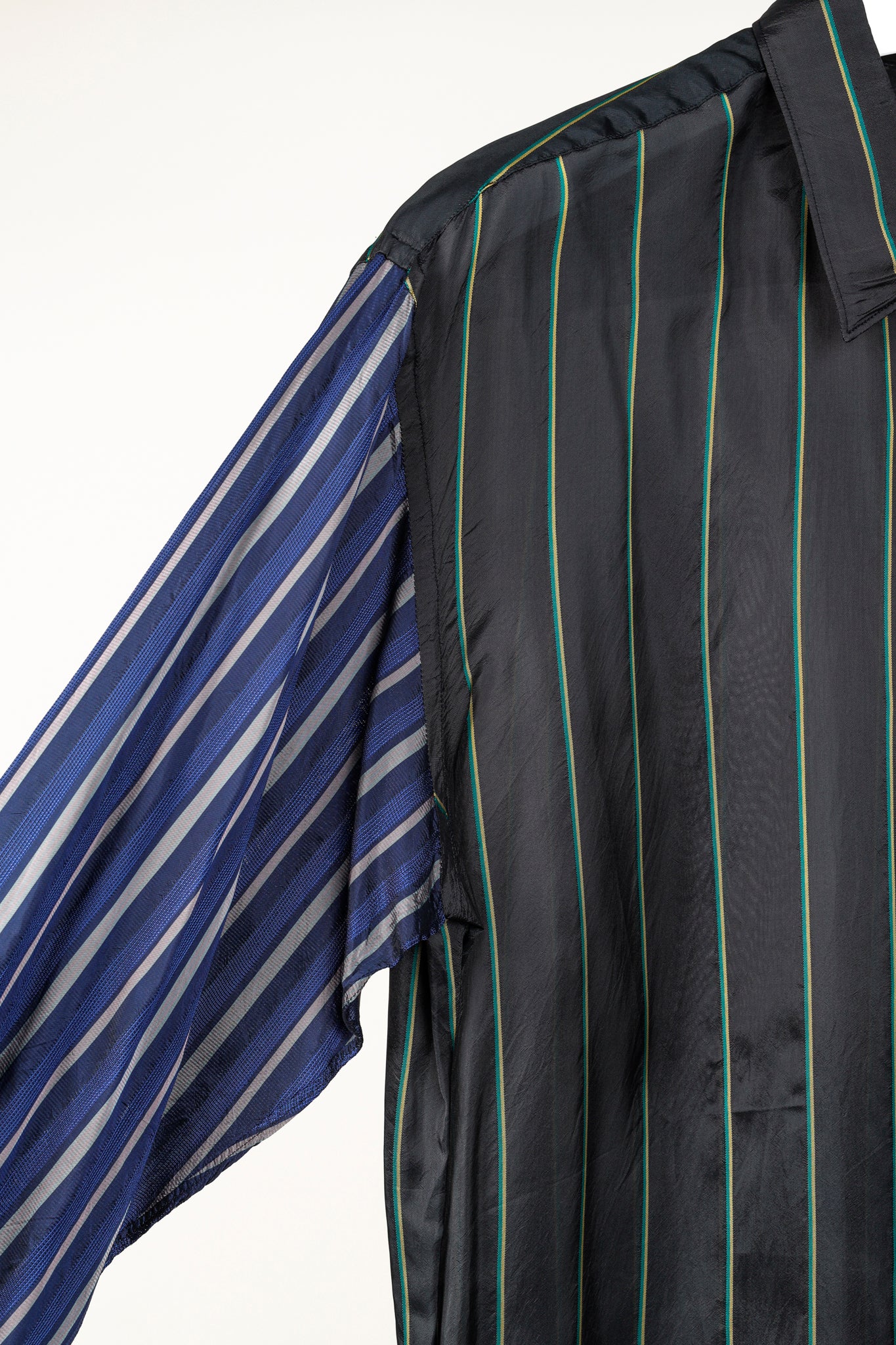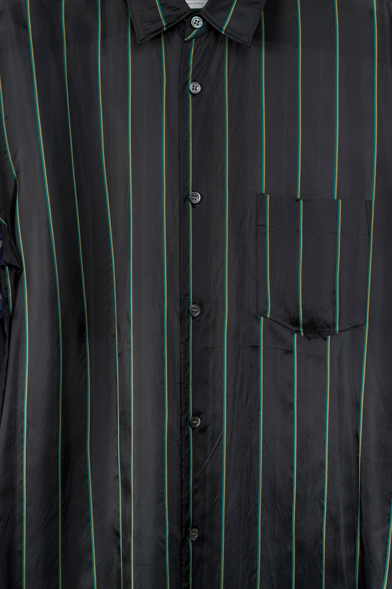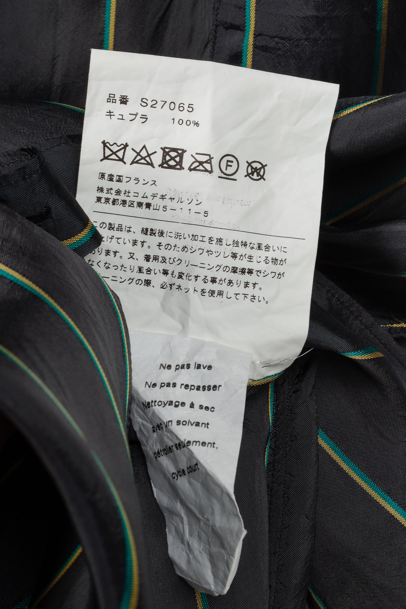 Experience bold and modern style with the Comme des Garçons Shirt Multi-Colour Stripe Button Up. With its black, green, blue, and pink stripes, this shirt is perfect for making a statement. The pointed collar adds a touch of sophistication, while the long sleeve design and cupra fabric ensure comfort and durability. Elevate your wardrobe with this unique piece.