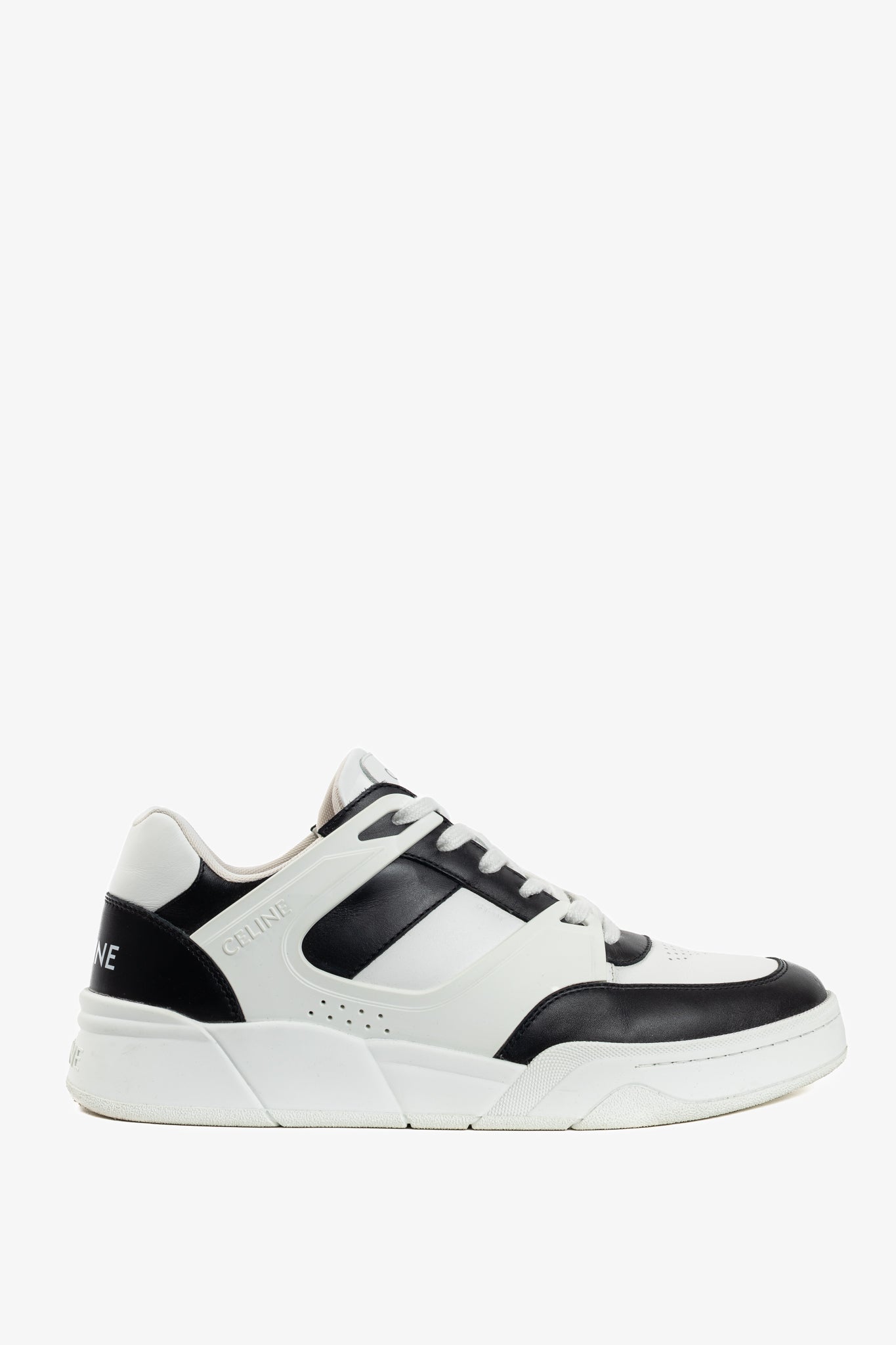 Celine CT-07 Optic White & Black Calfskin Low Lace-Up Trainers