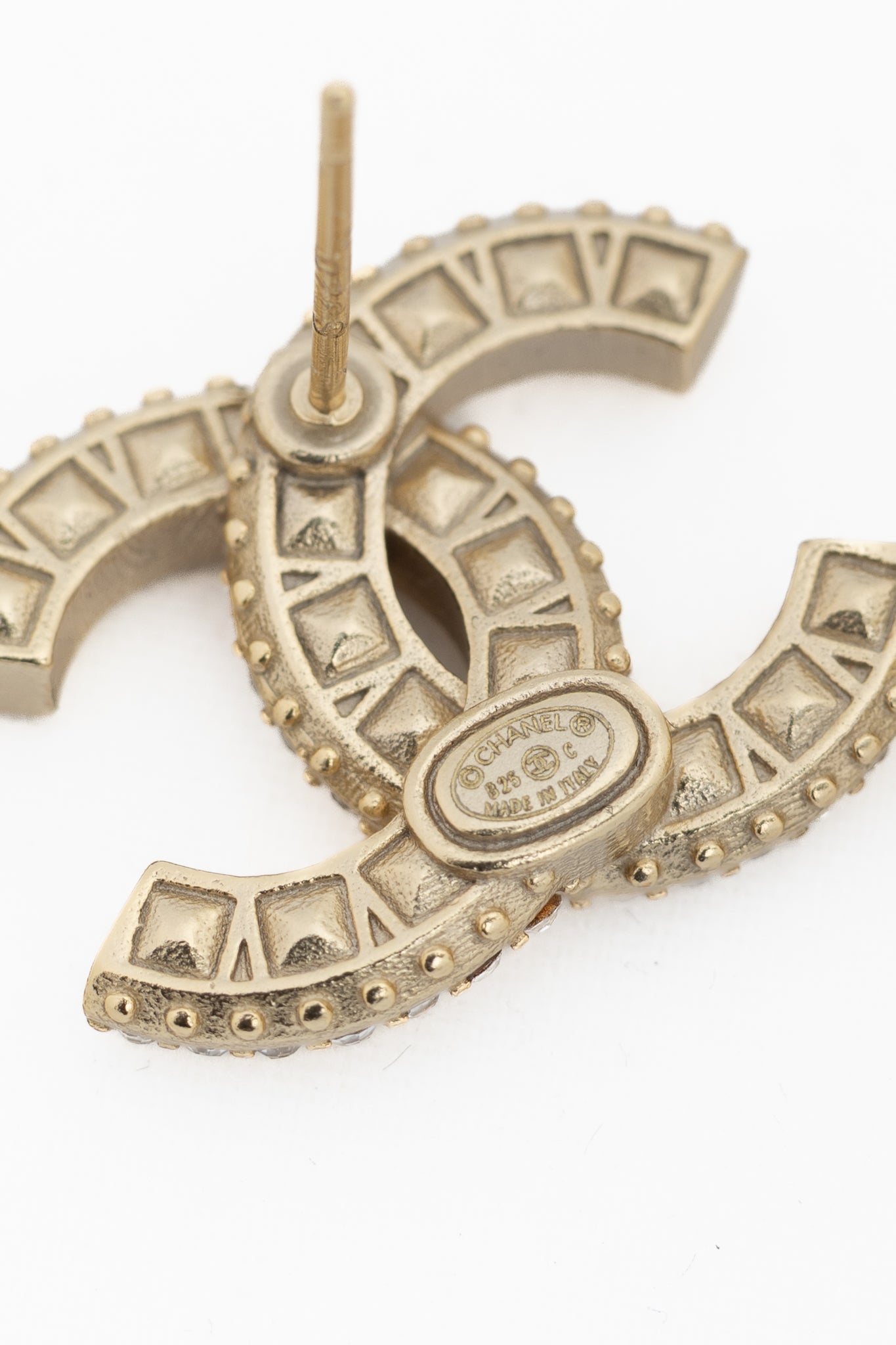 Chanel B25 Gold-Tone Crystal-Embellished CC Stud Earrings