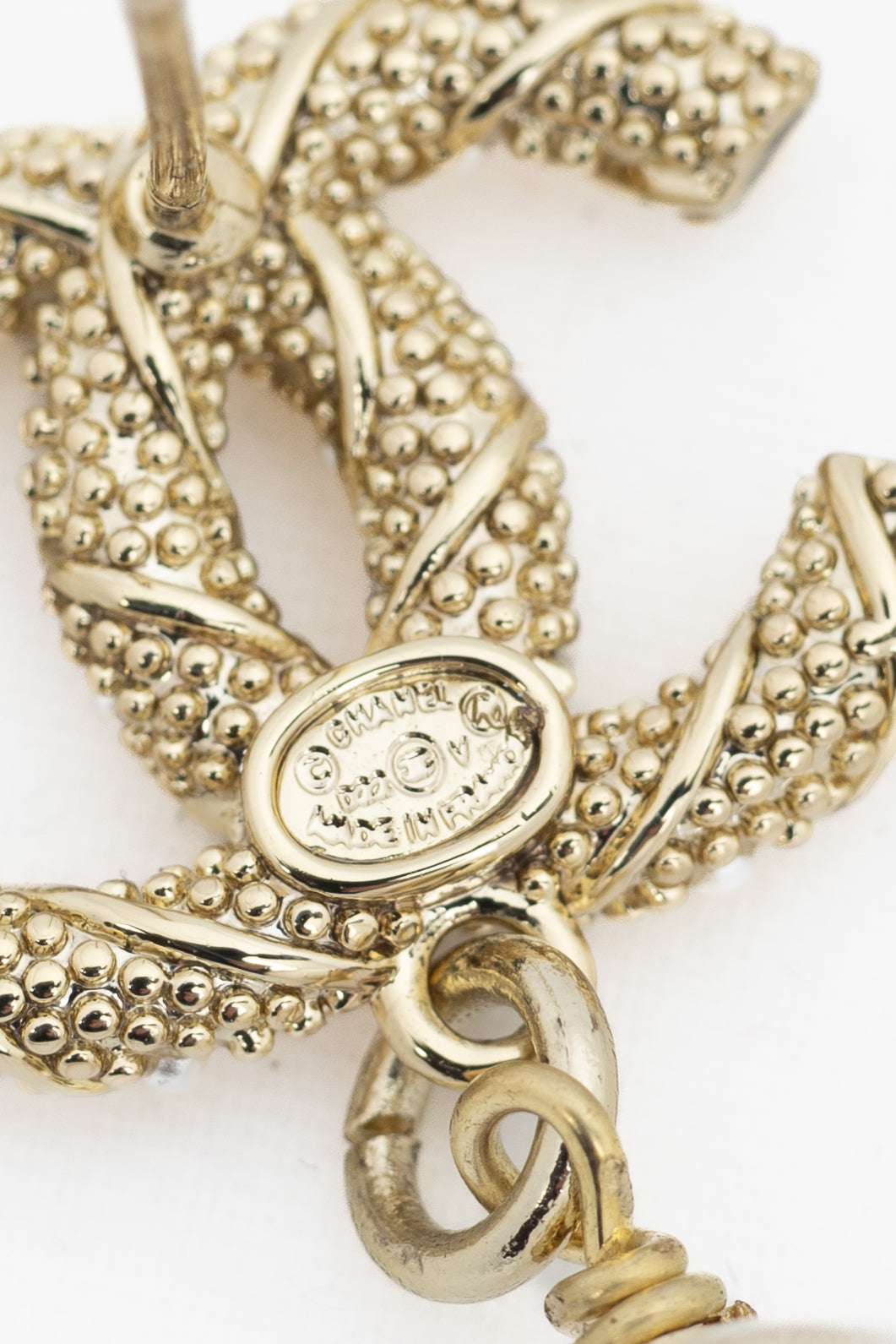 Chanel D22 Gold-Tone Pearl-Embellished CC Dangling-Charm Stud Earrings