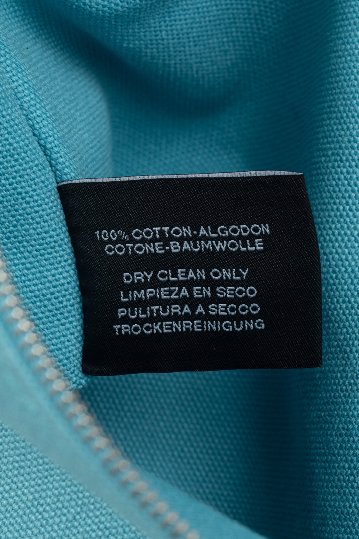 Composition: 100% cotton, leather trim, metal hardware.
