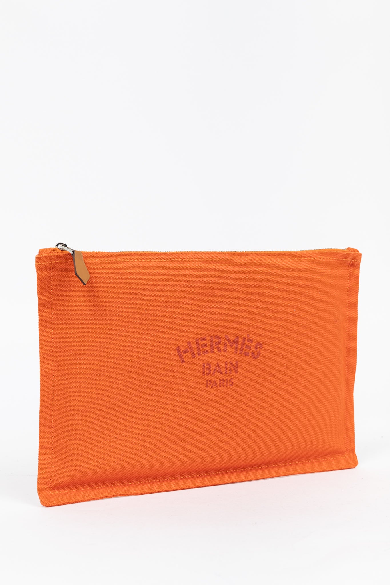 Hermes Flat Yachting GM Orange Logo Toile Pouch