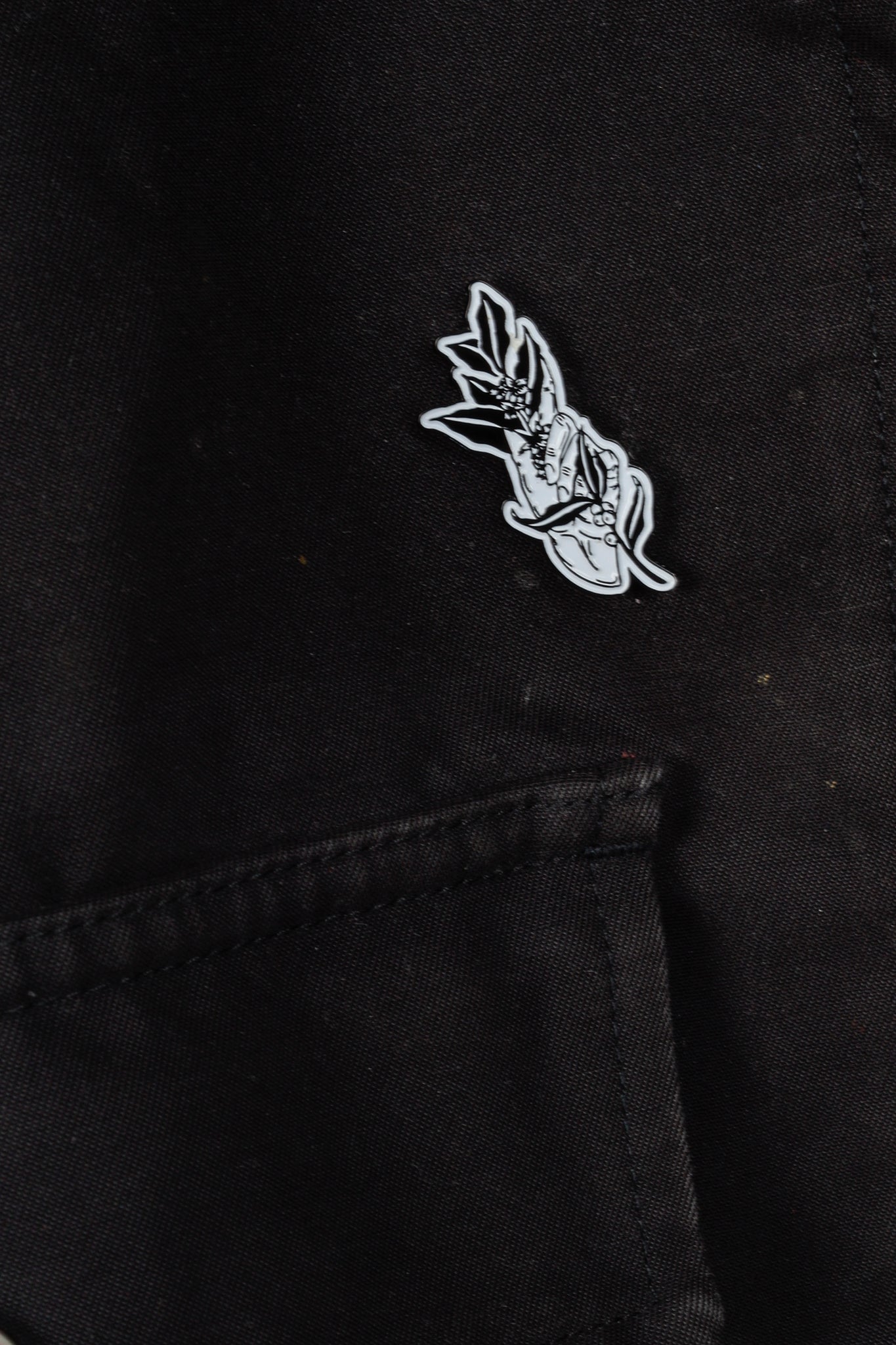 Condition: Very good; some residual marking on neckline, inner underarms, right shoulder, left sleeve, cuffs, and hem; some wear and tarnishing on snaps, light fading on seams. Comes with non-branded pin.