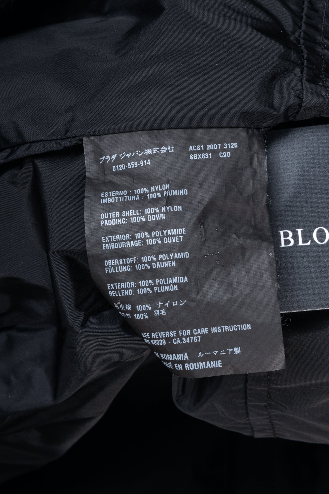 Composition: Outer shell: 100% nylon. Padding: 100% down.