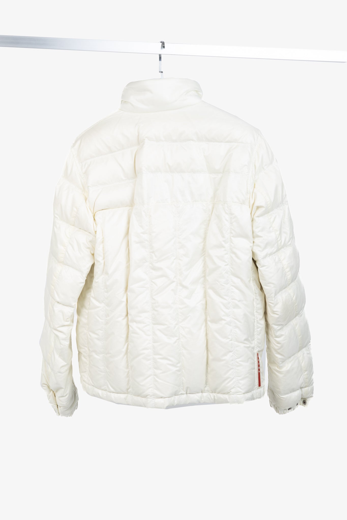 Prada Cream Nylon Embroidered-Logo Quilted Down Puffer
