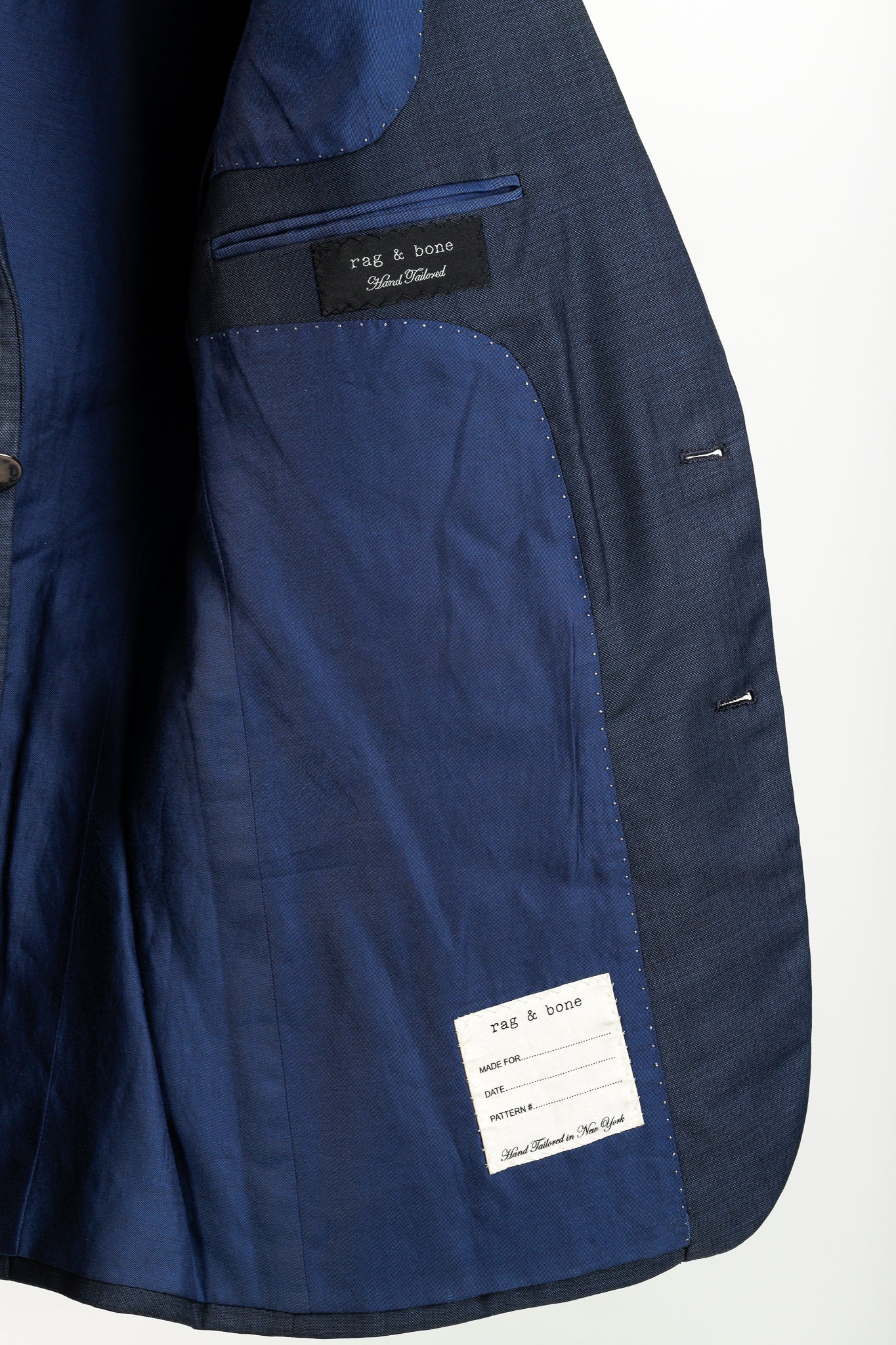 Rag & Bone Navy Blue Wool-Suiting Tailored Blazer